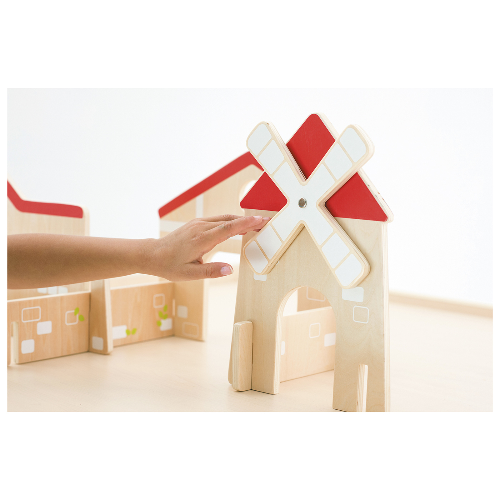 Les ailes du moulin tournent.• En bois contreplaqué, sérigraphié et recto verso.