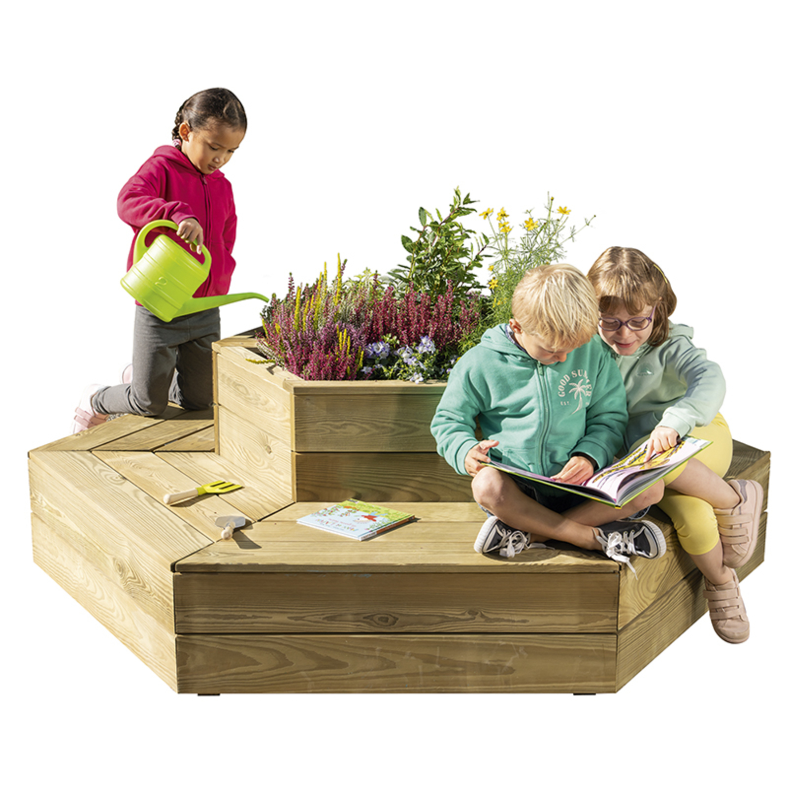 Ludique, solide, modulable, nos estrades en bois massif sont disponibles en 2 hauteurs et sont le complément idéal de la classe dehors.