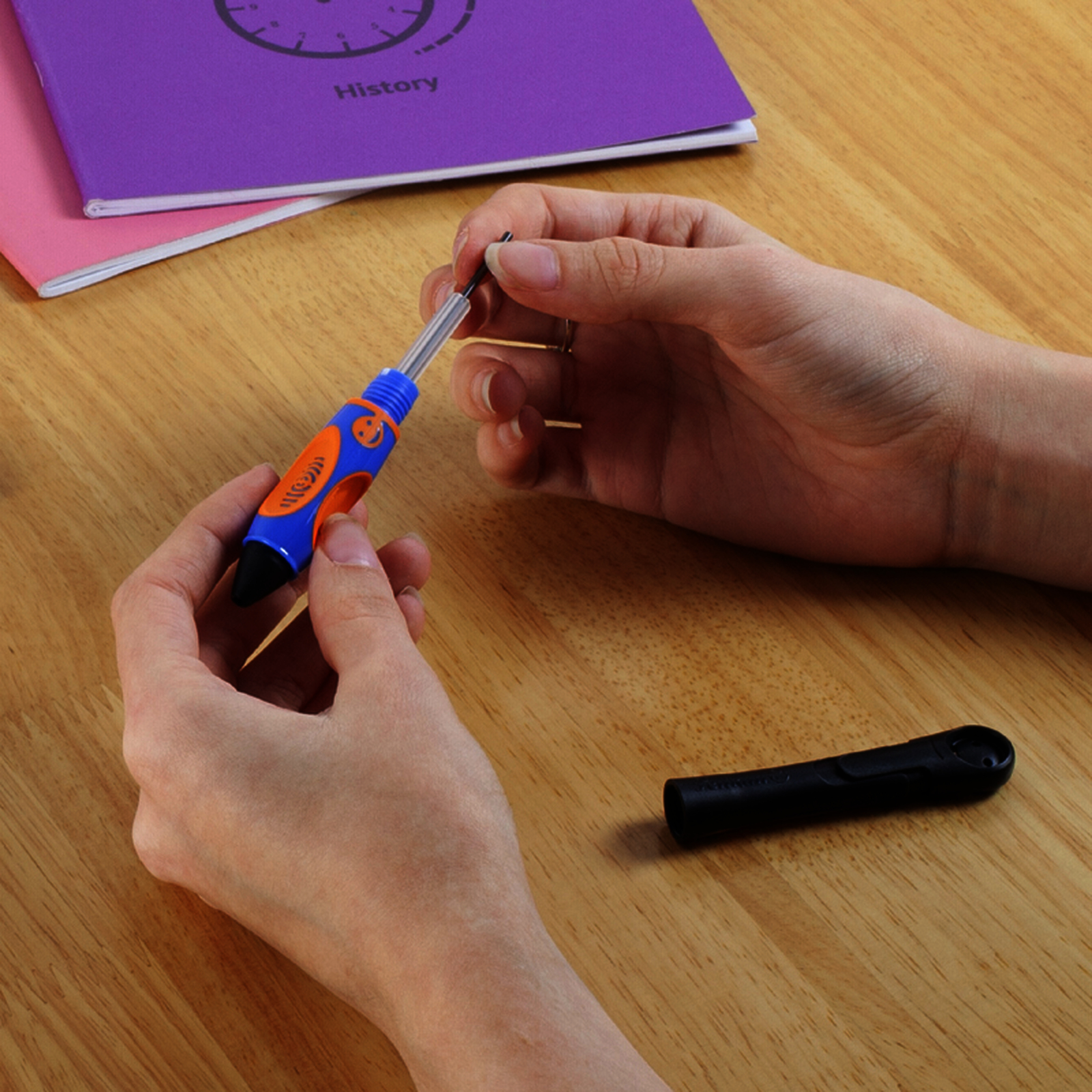 Pour une ?criture pr?cise des premi?res lettres : D?s le d?but, dans la position d'?criture id?ale. Duret? : HB.