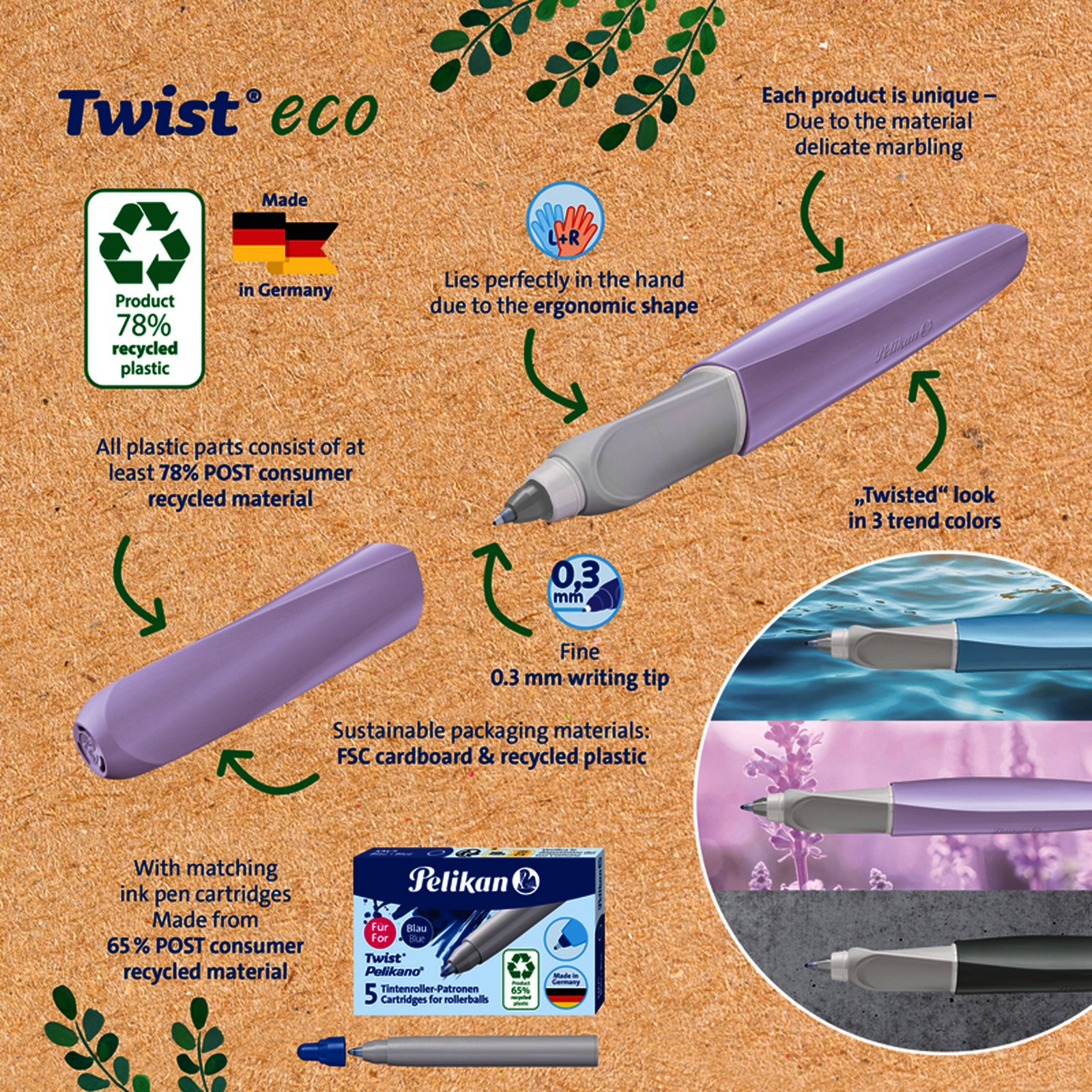 5 CARTOUCHES ROLLER PELIKANO TWIST ECO COLORIS BLEU