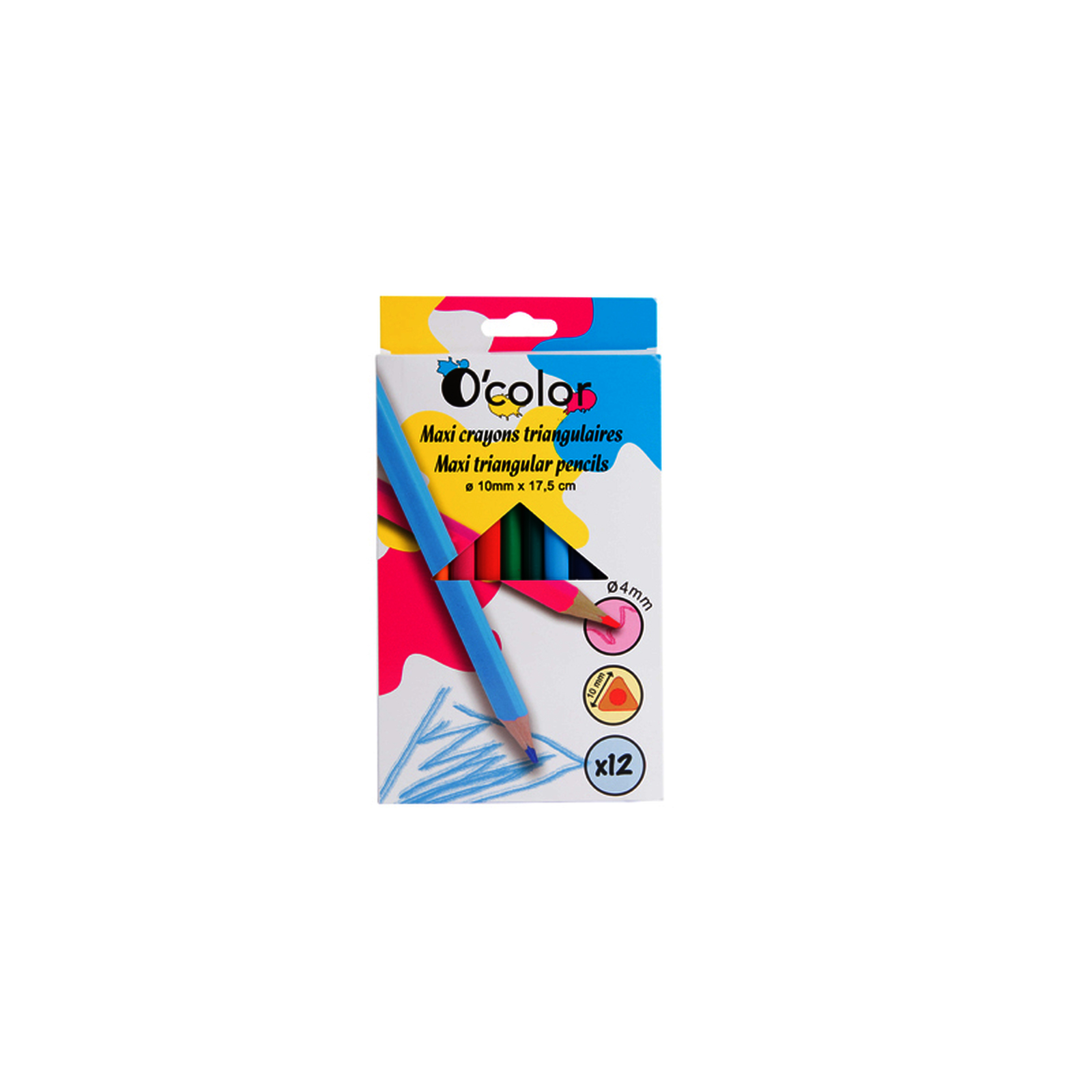 Forme triangulaire - 12 coloris - Long. : 17,5 cm - ? de la mine : 4 mm.