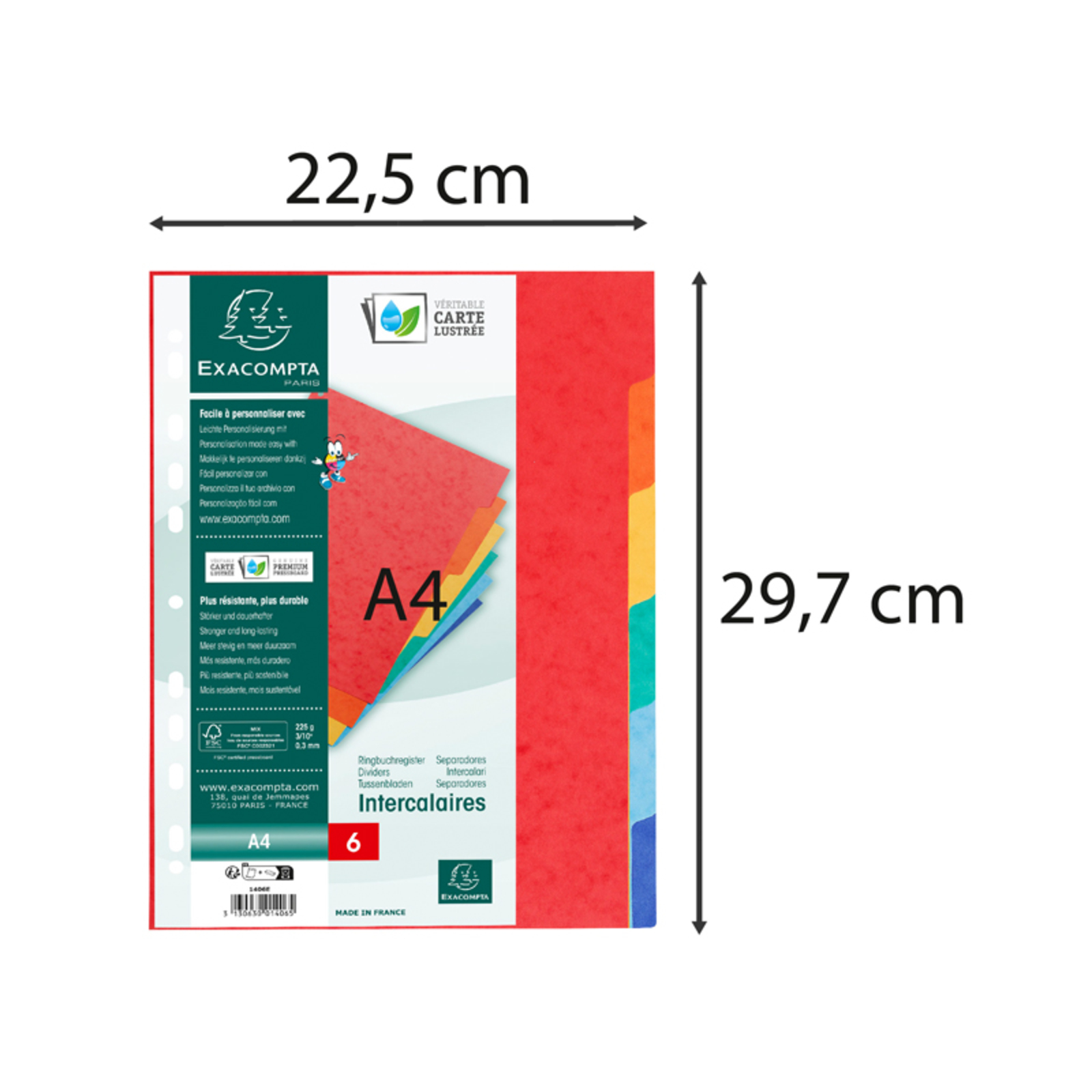 INTERCALAIRES A4 CARTE LUSTRÉE 6 POSITIONS