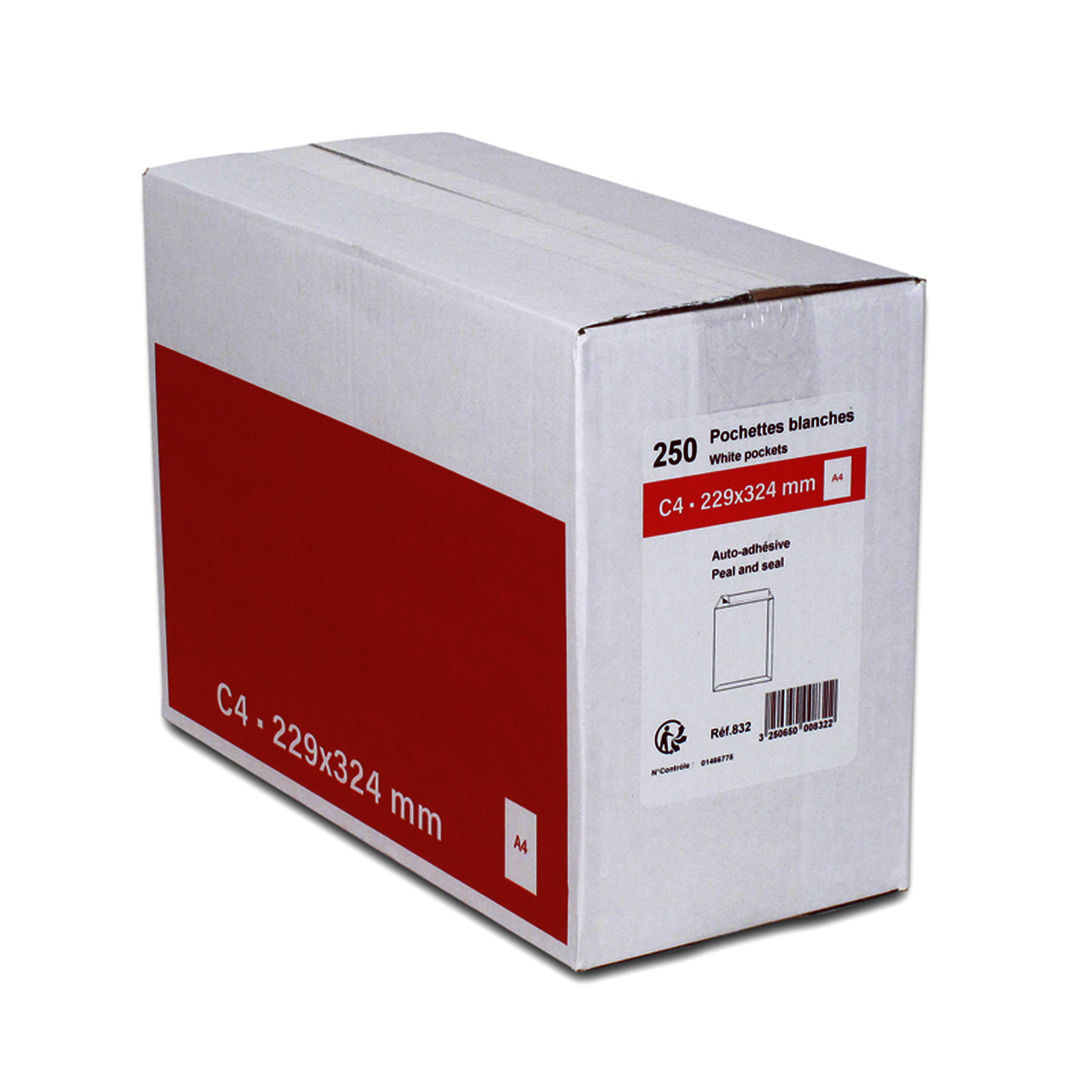 Auto-adhésives 90 g avec fermeture sécurisée et collage renforcé.La boîte de 250