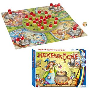 But du jeu : les petits sorcières et les petits sorciers doivent préparer leur potion magique! Le premier joueur lance le dé, qui indique une couleur. Le joueur retourne alors un champignon. Si la couleur du champignon est celle indiquée par le dé, le joueur peut mettre le champignon dans son chaudron. Si elle ne correspond pas, le champignon est replacé sur le disque tournant. Les autres joueurs essaient de se souvenir de la couleur, dans le cas où elle réapparait sur le dé la fois suivante. Celui qui remplit son chaudron le premier avec 7 champignons est chef cuisinier de potion magique ! Intérêt pédagogique : reconnaissance visuelle, motricité et reconnaissance des couleurs.Contenu : un plateau de jeu, 28 champignons et 1 dé2 à 4 joueurs - Durée : 15 min