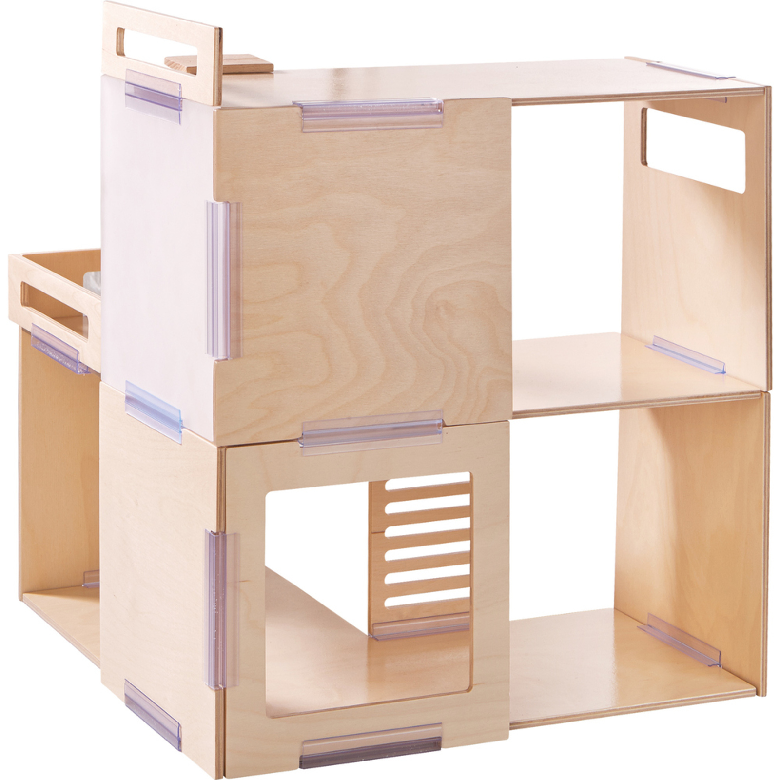 Maison sur 3 étages avec son mobilier assorti. La découpe du toit a été pensée pour mieux accéder au dernier étage. Compatible avec des personnages allant jusqu’à 30 cm. Équipée d’un escalier et de 2 barrières en bois.Contenu : 1 lit, 1 lavabo, 1 coiffeuse, 1 cuisine, 1 table, 2 chaises, 1 fauteuil, 1 lampe, 1 table basse, 1 tabouret et 1 plante verte - Dim. (L x l x H) : 60,8 x 37,9 x 105,3 cm