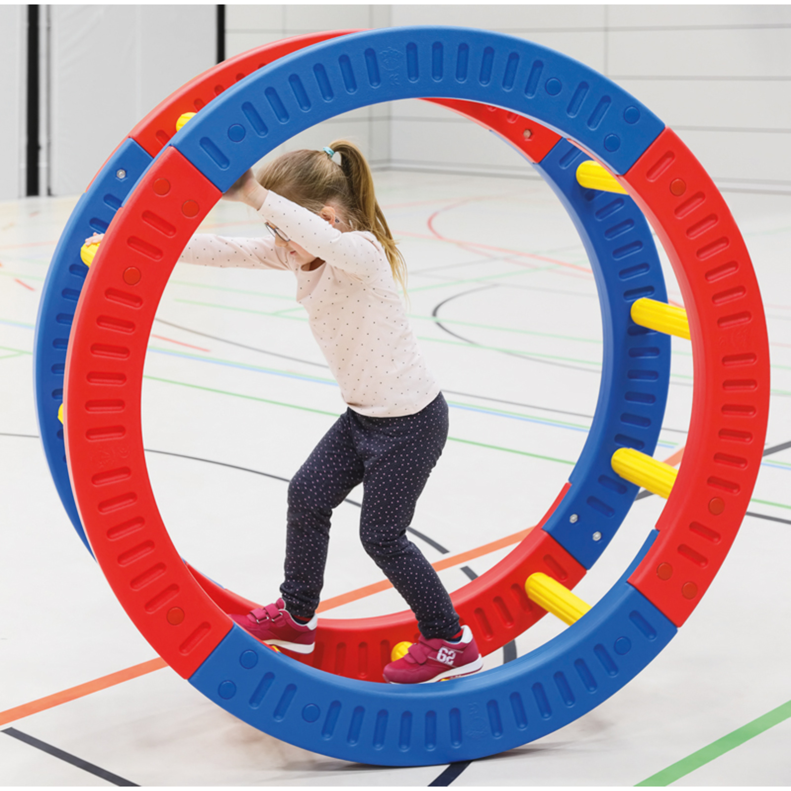 Cette roue géante convient pour rouler, l'équilibre, se balancer et l'escalade.Composée de 4 parties, qui peuvent également être utilisées comme des demie roues pour jouer. Des assemblages à vis invisibles et stables maintiennent l’ensemble de la roue. Distance entre les échelons env. 25 cm. En plastique robuste.Dim. Extérieure (Ø) : 134 cm - Dim. intérieure (Ø) : 108 cm - L'unité
