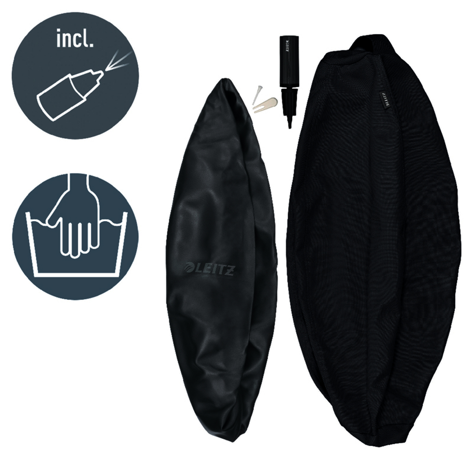 Ballon d?assise anti-basculement Leitz 55?cm pour posture et renforcement du dos et des muscles centraux. S?curis?, ?l?gant et certifi?, il favorise un environnement de travail actif.