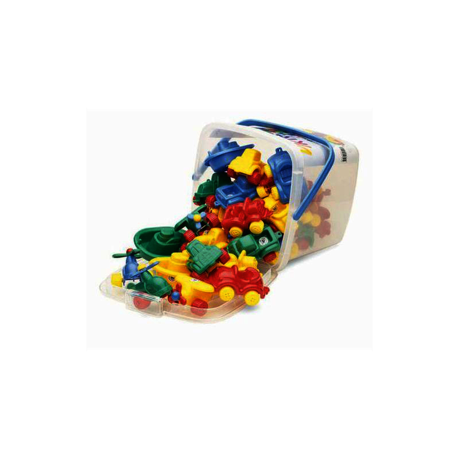 Baril contenant 20 mini v?hicules Viking Toys en vinyle souple incassable, roues silencieuses, couleurs inalt?rables, lavables au lave-vaisselle, avec baril de rangement pratique ? couvercle transparent. Dim. d'1 v?hicule : environ 7 cm.